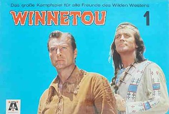 „Bonanza“, Brettspiel. Ich gehe jede Wette ein, dass jeder, wirklich jeder, der die Serie als Kind gesehen hat, nun spontan die Titelmelodie im Ohr hat. Und, wie ich selbst beim Gestalten dieser Seite, längere Zeit nicht mehr loswird. – WINNETOU, „Das große Kampfspiel für alle Freunde des Wilden Westens“, Brettspiel