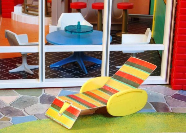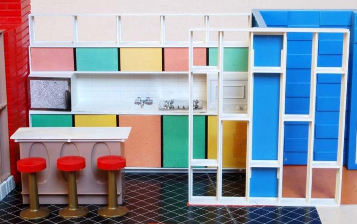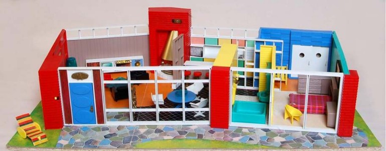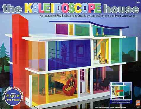 Ein moderner Klassiker aus dem Jahr 2001: Das Kaleidoscope – house des Herstellers Bozart, einem Hersteller, dessen sämtliche Spielzeuge von Künstlern konzipiert wurden – in diesem Fall von Laurie Simmons und Peter Wheelwright. So wurde das Kaleidoscope – house unter anderem über den Shop des MOMA, des Museum Of Modern Art vertrieben. Leider existiert die Firma Bozart mittlerweile nicht mehr, wie so oft zahlten sich Qualität und Originalität nicht aus. Und so zählt dieses Haus mittlerweile zu den weltweit gesuchtesten Raritäten auf diesem Sammelgebiet. Ich habe mein Exemplar ca. 2010 gekauft und obwohl ich mir nach meinem Motto „Ein unbespieltes Spielzeug hat seinen Daseinszweck verfehlt“ normalerweise nichts aus original verpackten Spielzeugen mache, verhält es sich in diesem Fall anders. Auch nach all den Jahren habe ich es immer noch nicht ausgepackt. Zum einen, weil mir ein genügend großer, möglichst staubfreier Platz zum Aufstellen fehlt. Plexiglas zieht nämlich den Staub an wie ein Magnet. Zum anderen, weil es mittlerweile vielleicht das einzige Exemplar in diesem Zustand auf der ganzen Welt ist!?
