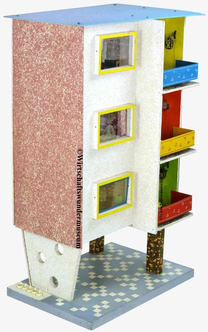 „Plattenbau-Hochhaus“, 1966, VERO, DDR. Maße: 47 x 40 x 91 cm