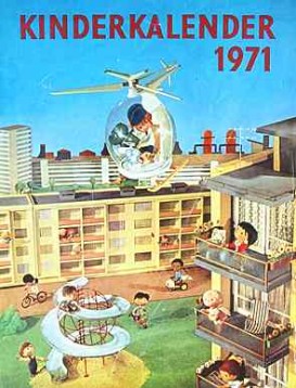 Zwei Abbildungen, die Parallelen zum „Hochhaus“ aufweisen: „Kinderkalender 1971“ sowie „Unser Wohnhaus“, „Ein Ausschneidebogen nach dem Baukastenprinzip“