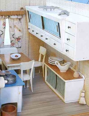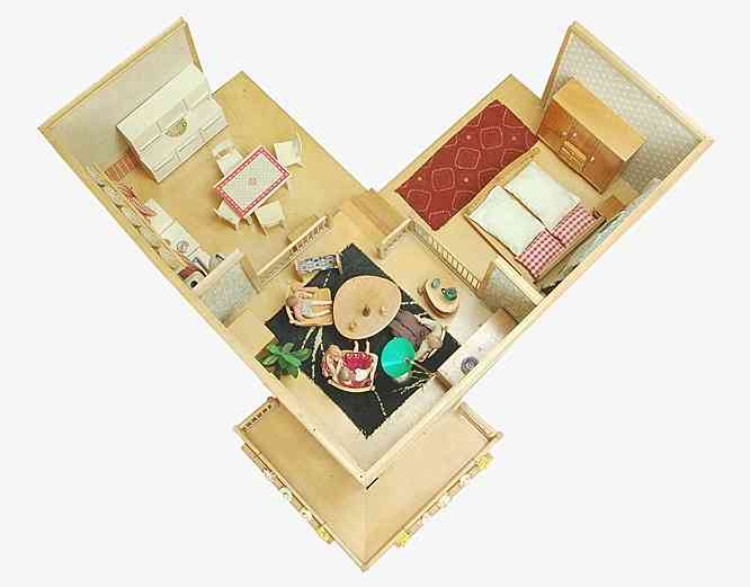 Gehäuse mit zwei Räumen und originaler Möblierung von Herbert Dohnalek, Maße: 63 x 34 x 27,5 cm