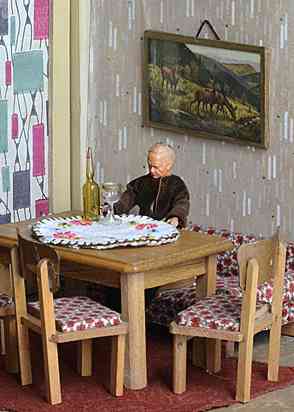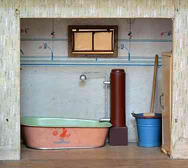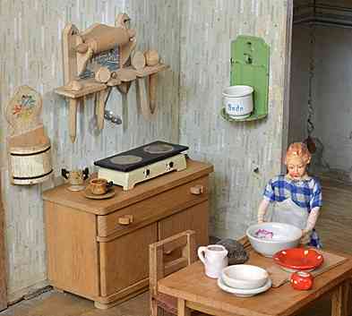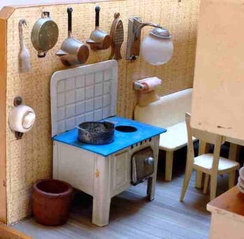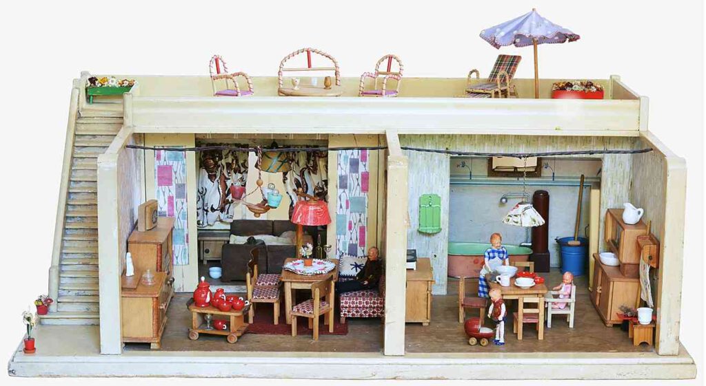 Diese Puppenstube mit ihrer authentischen zeitgenössischen Bestückung spiegelt die Wohnverhältnisse einer Familie, die offensichtlich das Glück hatte, nicht ausgebombt zu werden, da sowohl Möbel als auch Hausrat (unter anderem „das gute Kaffeeservice“) noch vorhanden sind. Dennoch bekundet sie die Beschränkung auf das Notwendigste in dieser Zeit des Mangels: beispielsweise zeugt das Küchengerätebord von einem gewissen Wohlstand vergangener Tage, im Gegensatz dazu steht die spärliche Kochgelegenheit und auch die spartanische Badezimmereinrichtung lässt noch nicht ahnen, dass es den meisten Menschen in Westdeutschland bereits wenige Jahre später wieder besser geht.