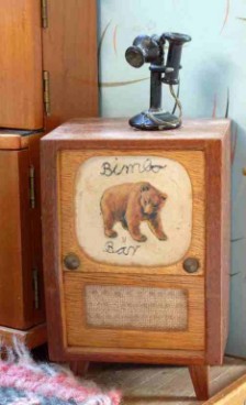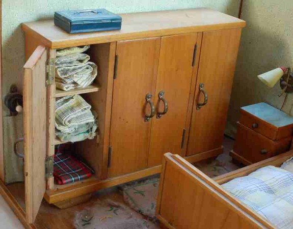 Einfachste, aus Streichholzschachteln zusammengebastelte Puppenmöbel. Foto aus einem Bastelbuch von 1945