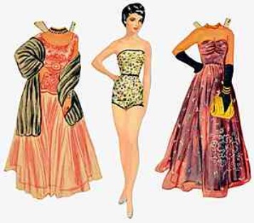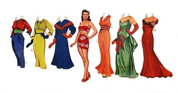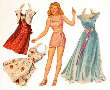 Neben diversen Filmgrößen, die vor allem innerhalb der USA populär waren oder die mittlerweile in Vergessenheit geraten sind, stößt man im Bereich der Papierpuppen auch auf etliche Namen, die selbst nach mehreren Jahrzehnten nicht nur eingefleischten Kinofans immer noch ein Begriff sind: Elisabeth Taylor, Grace Kelly, Kim Novak, Julie Andrews, Jane Russell, Rita Hayworth und die „badende Venus“ Esther Williams gehören ebenso in diese Gruppe wie Marilyn Monroe, der als Paper Doll aus modischen Gründen eine extreme Wespentaille verpasst wurde, wie sie das Sexsymbol im wirklichen Leben sicherlich niemals besessen hat.