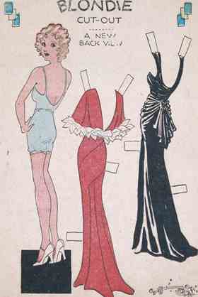Eine weitere Kategorie bilden Comicfiguren, die vor allem auch in Zeitungen und Zeitschriften zu finden waren. Als Zugabe zu kurzen Comicstrips wie Blondie oder Flash Gordon wurde häufig noch eine entsprechende Ankleidepuppe abgedruckt.