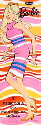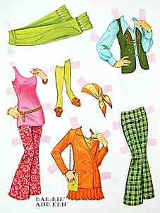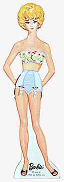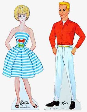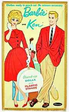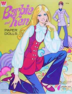 Jedoch begann bereits gegen Ende der 50er das Interesse an Paper Dolls in den USA merklich abzuflauen. Kinder verbrachten vermehrt ihre Zeit vor dem Fernseher oder zogen bereits die in diesen Jahren ihren unvergleichlichen Siegeszug startenden Barbiepuppen an und aus. Die Idee zu ihrem Welterfolg kam Barbie-Erfinderin Ruth Handler übrigens, als sie ihrer Tochter beim Spielen mit Ankleidepuppen aus Papier zusah und sie daraufhin eine Puppe entwarf, die nicht die üblichen kindlichen Züge aufwies, sondern wie ein Fotomodell aussah. Aber obwohl die Paper Dolls gegen stetig sinkende Verkaufszahlen zu kämpfen hatten, wurden sie weiterhin fleißig produziert. Einen immer noch recht großen Erfolg erzielten dabei ausgerechnet Paper Dolls zum Thema Barbie, sodass deren stilistischer Wandel über die Jahrzehnte sich auch im Papierpuppenformat auf sehr sehenswerte Weise nachvollziehen lässt.