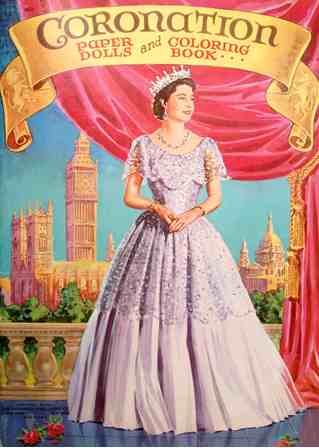 Ebenfalls in den Bereich der „Celebrities“ einzuordnen sind die „gekrönten Häupter“, besonders beliebt ist in diesem Zusammenhang das englische Königshaus. So kann beispielsweise die prunkvolle Krönungszeremonie von Elizabeth II. mithilfe einer 1953 bei Saalfield erschienenen Kombination aus Ausschneideheft und Malbuch inklusive Thron und gülden auszumalender Pferdekutsche stilecht nachgespielt werden.