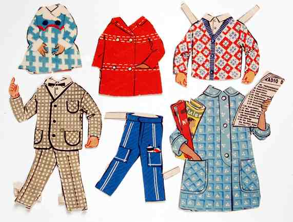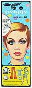 Als besonderes Highlight für Mode interessierte erweist sich jedoch eine Ankleidepuppe, die die britischen Stilikone Twiggy zum Vorbild hat. Die 1967 bei Whitman produzierte „Magic Paper Doll“ mit selbst haftender Kleidung bietet in ihrer attraktiv illustrierten Verkaufsschachtel ein umfangreiches Sortiment schrill-bunter Garderobe im unverwechselbaren Look der Swinging Sixties.