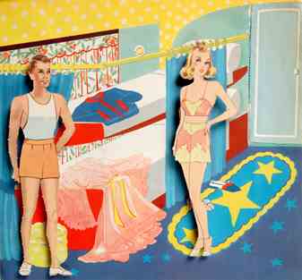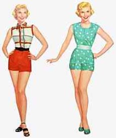 Im weiteren Verlauf der 40er tritt dann langsam wieder Normalität ein und Uniformen sind im Bereich der Ankleidepuppen nur noch Flugkapitänen und Stewardessen anzuziehen. Stattdessen haben die Paper Dolls bevorzugt das Freizeitverhalten der Amerikaner zum Thema. So erholen sich die Städter beispielsweise gerne auf einer „Dude Ranch“, in deutsche Verhältnisse übertragen eine Art „Ferien auf dem Bauerhof“ der luxuriösen Art.
