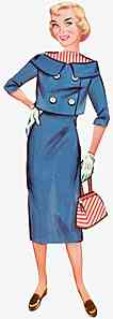 Die vor allem aus Kino-Komödien bekannte Schauspielerin Doris Day bildete einen Gegenpol zur „Sexbombe“ Marilyn Monroe und verkörperte in ihren Rollen überwiegend sittsame Frauentypen - entsprechend konservativ gehalten sind ihre Paper Doll-Kleidungsstücke.