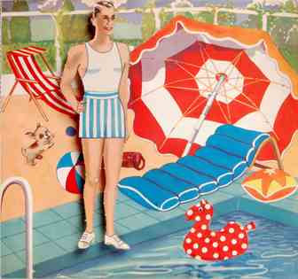 Im Allgemeinen verbrachte man seinerzeit die Freizeit aber wohl nicht viel anders als heute. So führen uns die Paper Dolls an den Strand, in den „Circus“, zum „Carnival“, zum „Square Dance“ oder einfach nur zum Grillen in ihren Garten und lassen den heutigen Betrachter in Form ebenso ansprechender wie aussagekräftiger Illustrationen am amerikanischen „Lifestyle“ zur Mitte des vorangegangenen Jahrhunderts teilhaben.