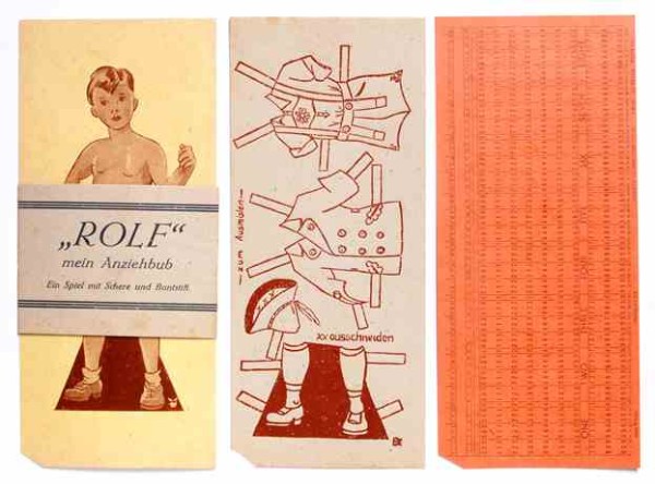 Weit weniger ausgeprägt als in Amerika war die Paper Doll Kultur innerhalb des beschriebenen Zeitraums in Deutschland und später in der DDR. Dennoch sind auch in diesem Bereich viele ungewöhnliche und „Geschichten erzählende“ Ankleidepuppen zu entdecken, von denen hier zwei recht kuriose Exemplare als „Appetithappen“ für potenzielle Sammler zumindest kurze Erwähnung finden sollen: Den Papiermangel der Nachkriegszeit dokumentiert „Rolf – mein Anziehbub“.