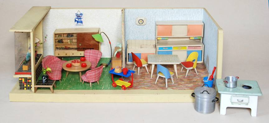 Als ich bei einem Magdeburger Trödler diese Küchenmöbel entdeckte, musste ich sie haben. Zumal der Verkäufer nach eigene Aussage die komplette Puppenstube so bekommen hat, diese also wohl noch authentisch eingerichtet ist. Falls jemand aus dem Magdeburger Raum also seine alte Stube wiedererkennen sollte, würde ich mich über eine Kontaktaufnahme freuen! Maße: 72 x 33 x 25 cm