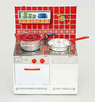 Spielzeug-Blechküchen der 1950er Jahre