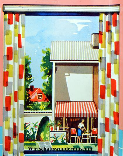 „Die bedrückende Enge des durch die jeweiligen Ämter zugeteilten Wohnraums und der Zwang zur Gemeinschaft mit fremden Menschen ließen die Wiedererlangung und Sicherung privater Häuslichkeit zum zentralen Ziel der Westdeutschen werden“ (Informationen zur politischen Bildung, Heft 256). In Angriff genommen wurde dies vorrangig durch den Bau von staatlich subventionierten Sozialwohnungen. Dabei hatte aufgrund des immensen Bedarfs die Schaffung möglichst vieler verschiedener Wohneinheiten oberste Priorität, sodass Abstriche bezüglich Größe und Ausstattung in Kauf genommen werden mussten. Anfangs standen einer vierköpfigen Familie durchschnittlich knapp 50 Quadratmeter zur Verfügung, was in den allermeisten Fällen dennoch eine erhebliche Verbesserung der zuvor erlebten Wohnsituation darstellte. Obwohl noch lange nicht bei allen Menschen die dringlichsten Bedürfnisse befriedigt waren, wuchsen im weiteren Verlauf der 50er Jahre mit den Einkommen der Besserverdienenden auch deren Wünsche. Das 1956 verabschiedete „Zweite Bundeswohnungsbaugesetz“ förderte durch erhebliche steuerliche Vergünstigungen die Bauwilligen und 1963 besaßen bereits mehr als ein Drittel der Haushalte Wohneigentum, nicht selten das viel zitierte „kleine Häuschen“ im Grünen. Die Verkleinerungsform ist in diesem Fall durchaus berechtigt, da die Wohnflächen aus Kostengründen recht kompakt bemessen waren. Gespart wurde insbesondere bei der Planung der Küche, sodass die laut DIN-Norm als ausreichend erachteten 6,5 Quadratmeter Grundfläche für den „Kommandostand des Hauses“ eine gängige Größe darstellten. Ein Umstand, dem der zeitgenössische Einrichtungsratgeber „Unsere Wohnung“ durchaus etwas Positives abgewinnen kann: „Die aus der Not der Nachkriegsjahre und den Notwendigkeiten, so schnell und so sparsam, also auch raumsparend wie nur möglich zu bauen, entstandenen Kleinst-Küchen haben den nicht zu unterschätzenden Vorteil, weite Kreise zur sinnvollen Einrichtung der Küche zu zwingen und sie so auf den Geschmack an der arbeitsintensiven Küchengestaltung zu bringen“.