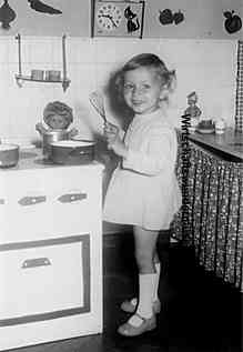 Auf diesem privaten Schnappschuss ist eine Kreher-Küche im Hintergrund zu sehen. Das Kind spielt aber lieber mit dem Selbstbau-Herd.