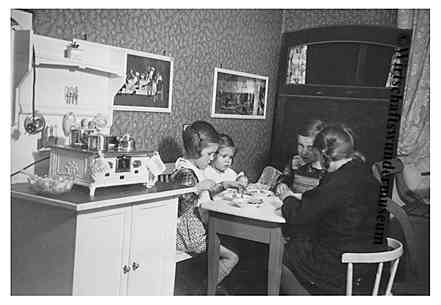 Die Einrichtungen der Wohnungen beschränken sich allerdings noch auf das Notwendigste und die Möbelstücke spiegeln in der Regel den Stil der Vorkriegszeit wider. Das stilistische Erscheinungsbild der Küchen dominiert der „Gelsenkirchener Barock“ mit seinen ebenso wuchtigen wie unpraktischen Buffets.