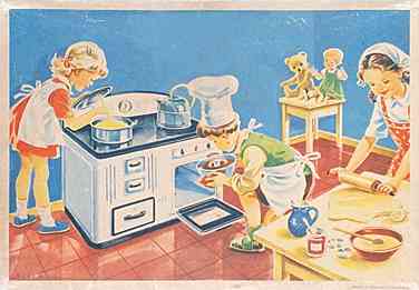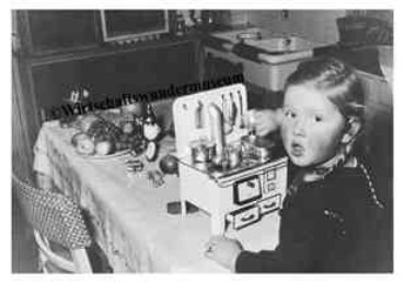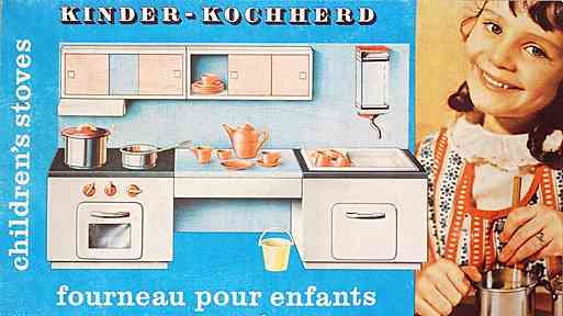 Ideologische Grenzen überwindend werden die Erzeugnisse der beiden genannten sowie vieler weiterer Firmen in das kapitalistische Ausland exportiert und sind dadurch willkommene Devisenbringer. Gemeinsam ist den Produkten aus Deutschland-Ost und Deutschland-West zudem der pädagogische Auftrag, welchen Lehr- und Lernspielzeug wie dieses vermitteln soll: Den Nachahmungstrieb der Kinder wecken (hier speziell den der Mädchen), eine Vertrautheit mit Geräten und Vorgängen in der Küche schaffen, um durch daraus resultierende Erfolgserlebnisse sowie den Spaß am Spiel letztlich zu einer positiven Belegung des Begriffes Arbeit zu gelangen.