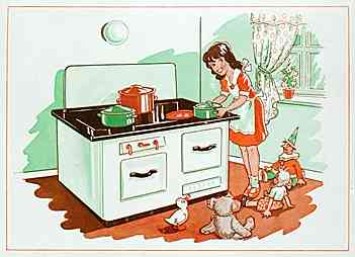 Diese Frage stellt 1956 „Das goldene Buch der Frau“, ein „Buch der modernen Lebensführung“, um sie postwendend selbst zu beantworten: „Den Hausfrauen ist mit jedem ersparten Schritt, mit jedem erleichterten Handgriff und mit jedem arbeitssparenden Gerät geholfen.“ Letztere halten in Form elektrisch betriebener Herde, Kühlschränke und einer Vielzahl kleinerer Maschinen Einzug in die Küchen der Wirtschaftswunderzeit. Das geschieht in Deutschland in einem solchen Umfang, dass diese Zeit im Rückblick als „Elektrifizierung der Haushalte“ bezeichnet wird, obwohl die Erfindung einiger dieser Geräte schon etliche Jahrzehnte zurückliegt. – So erhält beispielsweise der Amerikaner George B. Simpson bereits im Jahr 1859 ein Patent auf den von ihm entwickelten Vorläufer eines Elektroherdes. Da jedoch zu dieser Zeit an den wenigsten Orten eine flächendeckende Stromversorgung vorhanden ist und sein Prototyp darüber hinaus keine exakte Regelung der Temperatur zulässt, bleibt ihm zu Lebzeiten die gebührende Anerkennung versagt. In den 1920er Jahren gelangen die Hersteller dann in den USA durch den Ausbau der dortigen Stromnetze sowie dank einer mittlerweile entscheidend verbesserten Regulierbarkeit der Herde schließlich doch zu stetig steigenden Verkaufszahlen.