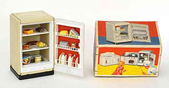 Da laut demoskopischer Erhebungen die Anschaffung eines Kühlschrankes ganz oben auf den Wunschlisten der bundesdeutschen Bevölkerung steht, fertigt die Firma ab 1954 einen „Puppen-Eisschrank in stabiler Blech-Plastik-Verarbeitung, mit zwei Plastikregalen zum Herausnehmen, einer Eiswanne und Lebensmittel-Attrappen“. Getreu dem großen Vorbild „flammt beim Öffnen eine elektrische Birne auf“.
