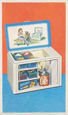 Gefriertruhen gehören zu dieser Zeit noch nicht zu dessen Grundausstattung und kommen vorwiegend gewerblich zum Einsatz. Dass ein entsprechendes Fuchs-Modell heute zu den größten Raritäten innerhalb dieses Sammelgebietes zählt, lässt darauf schließen, dass diesem Spielzeug deshalb trotz kindgerecht gestaltetem und ansprechendem Verkaufskarton kein großer Erfolg beschieden war. Bezeichnend auch, dass auf der Deckelillustration als Kühltruheninhalt nicht etwa fertig verpackte Tiefkühlwaren zu sehen sind – die es wohl schlicht und einfach noch gar nicht zu kaufen gab, sondern diverse Nudelgerichte der Firma Birkel…
