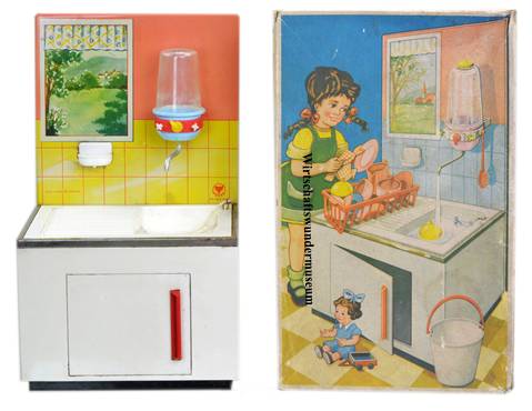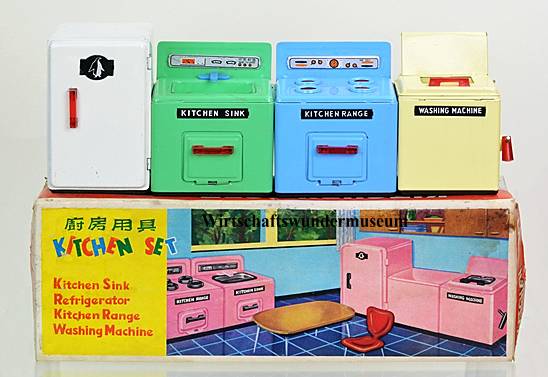 Ideologische Grenzen überwindend werden die Erzeugnisse der beiden genannten sowie vieler weiterer Firmen in das kapitalistische Ausland exportiert und sind dadurch willkommene Devisenbringer. Gemeinsam ist den Produkten aus Deutschland-Ost und Deutschland-West zudem der pädagogische Auftrag, welchen Lehr- und Lernspielzeug wie dieses vermitteln soll: Den Nachahmungstrieb der Kinder wecken (hier speziell den der Mädchen), eine Vertrautheit mit Geräten und Vorgängen in der Küche schaffen, um durch daraus resultierende Erfolgserlebnisse sowie den Spaß am Spiel letztlich zu einer positiven Belegung des Begriffes Arbeit zu gelangen.