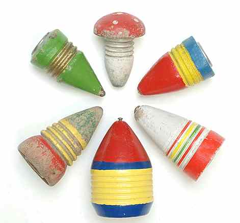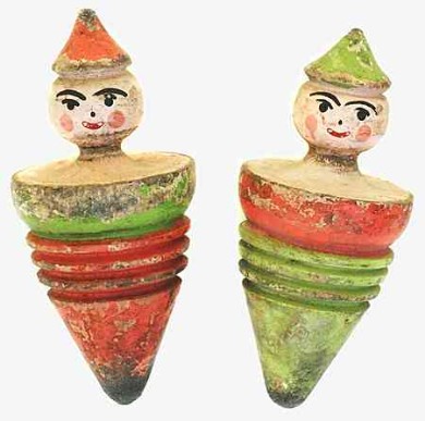 Intensiv bespielte figürliche Kreisel / Holzkreisel / Peitschenkreisel