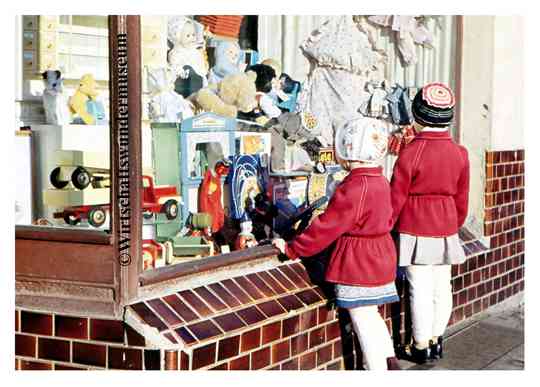 Das gezeigte Mädchenspielzeug und Jungenspielzeug stammt aus verschiedenen Zeitepochen und wird ganz bewusst kunterbunt gemischt präsentiert – vielleicht entdeckt der eine oder andere Besucher auf diese Art und Weise ja auch einmal ein anschauenswertes altes Spielzeug außerhalb seines normalen Interessengebietes. Ebenso enthalten ist DDR-Spielzeug, das in hohen Stückzahlen „in den Westen“ exportiert wurde und daher nicht selten ebenfalls in Kinderzimmern der Bundesrepublik zu finden war. –  Auf mich kann auch (und gerade!) billiges Plastik- oder „Kirmesspielzeug“ einen großen Reiz ausüben! Schließlich war es seinerzeit wesentlich weiter verbreitet als das heute insbesondere von Sammlern bevorzugte „Markenspielzeug“ von Steiff, Märklin, Schuco & Co.. Ganz besonders interessiert mich zudem Spielzeug mit Zeitbezug, sei es ein Würfelpuzzle aus den frühen 50ern, das spielende Kinder zeigt und gleichzeitig durch eine Baustellenlandschaft im Hintergrund den seinerzeit allgegenwärtigen Wiederaufbau dokumentiert oder gar ein Atomkraftwerk im Spielformat.