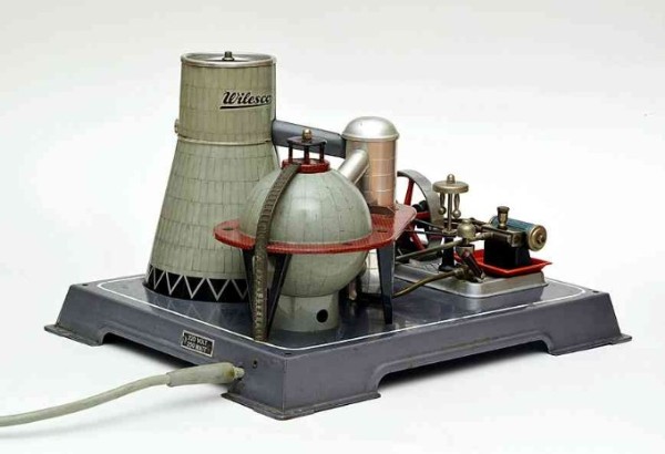 Da die Eltern dieses Spielzeug aber nun erst einmal kaufen mussten (und das offenbar nicht taten), wurde Wilesco durch zu geringe Verkaufszahlen wohl schon recht bald zum „Atomausstieg“ gezwungen. Indiz dafür ist, dass dieses vielsagende Spielzeug heute nur noch extrem selten auftaucht. – Erstmals zu entdecken ist es übrigens im Katalog eines Spielwarengroßhändlers aus dem Jahr 1958: „Ein neues technisches Spielzeug für die Jugend. Dieses Modell ist erstklassig verarbeitet und gleicht einem Original-Atomkraftwerk. Die Funktion gleicht einer elektrisch beheizten Dampfmaschine. Machen Sie bitte einen Versuch. Selbst als Blickfang für Ihr Schaufenster gut geeignet.“ – Maße: 30,5 x 25 x 18 cm